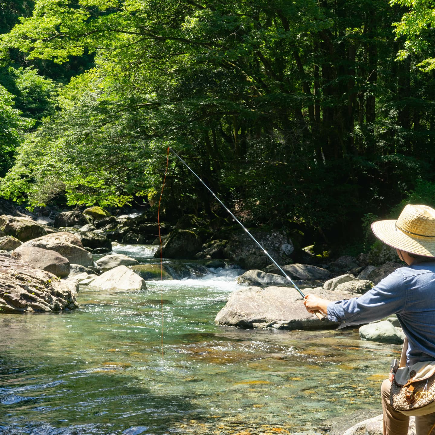 渓流釣りを楽しむ
